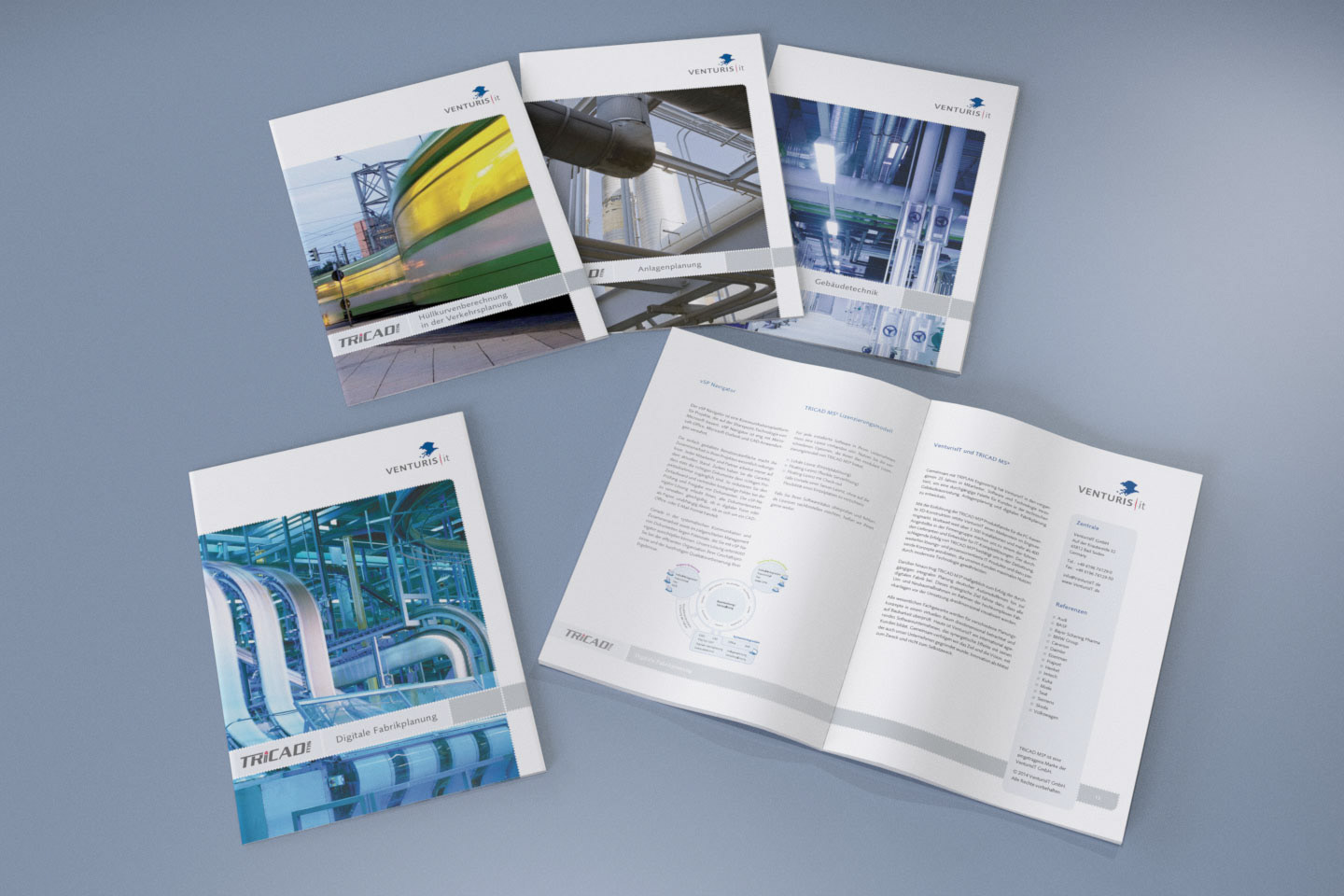 Konzeption und Gestaltung von vier 16-seitigen Produktbroschüren für die VenturisIT GmbH.